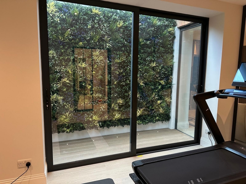 We specified a curated mix of our artificial green wall panels to create layered texture and subtle tonal variation, turning plain walls into a continuous feature surface. The panels were installed with minimal disruption to the ongoing refurb. Click here to see how we transformed other basements.
