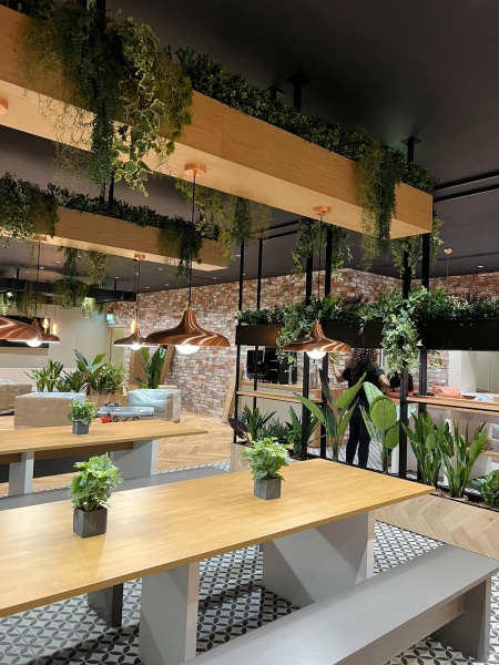 We were delighted to work on this project with Crystal Palace FC and MDC Group Online. The brief was to use artificial planting solutions as part of the redesign of the new bar and restaurant at Crystal Palace Training Ground to give it a welcoming and contemporary look and feel.