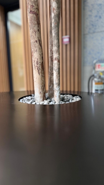 The key challenge in this project was to create a tree that appeared so lifelike that visitors couldn’t distinguish it from the real thing. It needed to blend seamlessly with the sophisticated environment while providing an impactful visual element. In addition, the 13-foot height required careful consideration in terms of installation logistics, ensuring the structure fit perfectly within the space without overwhelming the area.