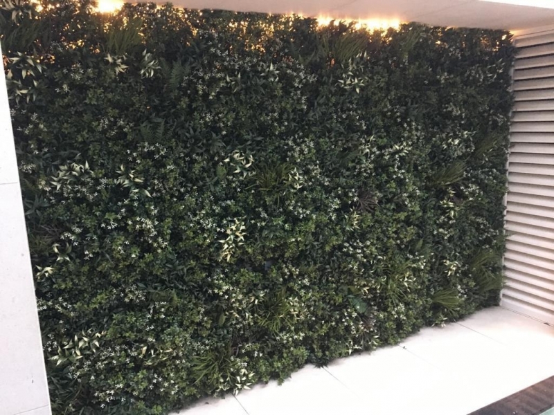Create a feature artificial green wall inspired by jasmine